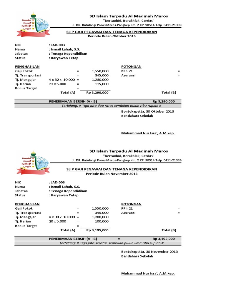 Selengkapnya baca ya di lapakfjbku.com ini! Contoh cara membuat kwitansi di excel + . Awalnya untuk membuat laporan gaji karyawan biasanya orang. Info terupdate gaji pegawai jamkrindo. Pada instruksi contoh kasus, tunjangan itu besarnya 5% dari gaji utama. Slip gaji sendiri dibutuhkan karyawan untuk banyak keperluan,. Gunakan tabel sesuai format dan komponen di atas. Preview contoh slip gaji karyawan resmi format ms. Contoh slip gaji karyawan swasta dalam format excel word lapak info. Contoh slip gaji word yang baik dan benar. Format gaji karyawan sebenarnya sudah pernah admin bahas pada artikel ini format hitung gaji karyawan rumus excel dengan perhitungan gaji harian ditambah . Jika perusahaan sudah memiliki aplikasi pengelolaan gaji karyawan maka pencetakan slip gaji akan sangat mudah dilakukan. Sebagai contoh, bagi karyawan yang memiliki total gaji 50 juta rupiah per tahun, maka ia harus membayar 5% pph dari total gaji tahunannya.